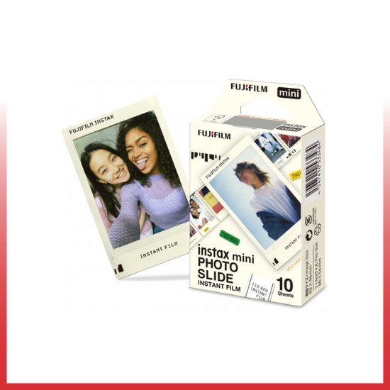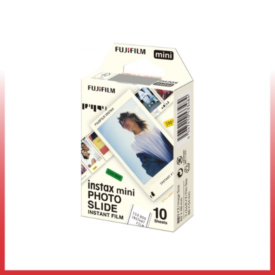 Fujifilm Refill Mini Instax Photo Slide berisi 10 lembar film warna instan yang kompatibel untuk digunakan dengan kamera seri INSTAX MINI. Film ini menampilkan reproduksi warna yang jelas dengan warna kulit alami apabila digunakan di bawah cahaya siang hari (5500K) atau kondisi pencahayaan lampu kilat elektronik. Struktur butiran yang halus memberikan ketajaman dan kejernihan gambar yang tinggi serta kecepatan film ISO 800 yang serbaguna untuk digunakan dengan berbagai macam subjek. Setiap lembar film menghasilkan area gambar mengkilap berukuran 2,4 x 1,8 inci yang dikelilingi oleh batas hitam. Pengembangan yang cepat dan instan dapat dilakukan apabila bekerja pada suhu antara 41-104°F.