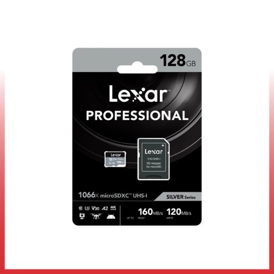 • Lexar 128GB Professional 1066x UHS-I A2 microSDXC Memory Card