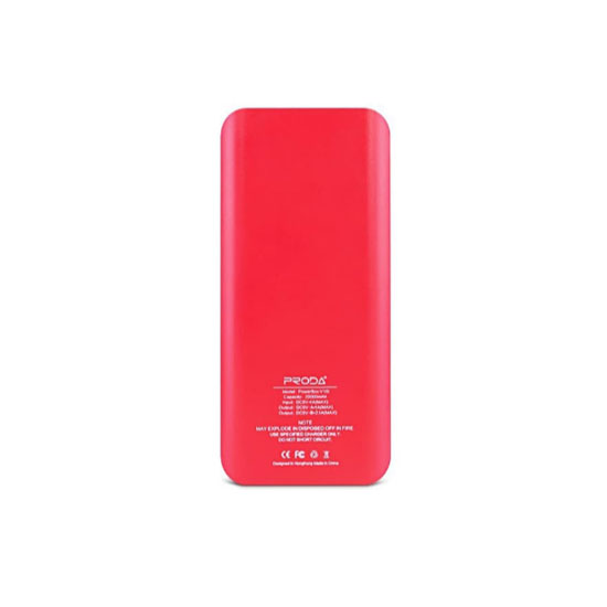Proda V10I Power Bank Led 20000mAh Jane – Red merupakan Power Bank dengan kapasitas 20000 dengan tampilan Digital pada layar LCD. Dilengkapi dengan lampu senter yang terang, dapat dipergunakan saat emergency. Desain ramping, modern, dan minimalis cocok untuk menemani anda sehari-hari. Rubber Coating Surface meminimalisir resiko jatuh ketika digenggam dengan 2 USB daya tinggi output Remax PRODA 20000mAh Dua USB Eksternal Power Bank memungkinkan untuk mengisi 2 perangkat pada saat yang sama sehingga memudahkan membawa beberapa gadget. Membuat hidup digital Anda lebih mudah!